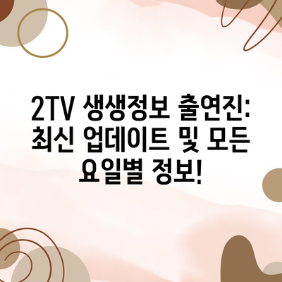 2TV 생생정보 출연진: 최신 업데이트 및 모든 요일별 정보!